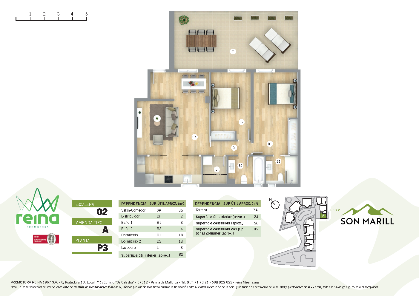 “Ses Fonts” lo conforman 36 viviendas unifamiliares pareadas de las que inicialmente se desarrollará una primera fase de 22 viviendas. Las viviendas tienen orientación sur-este y sur-oeste, cuentan con amplias y luminosas estancias, con vistas al Bosque de Bellver y Castillo y sierra de Na Burguesa