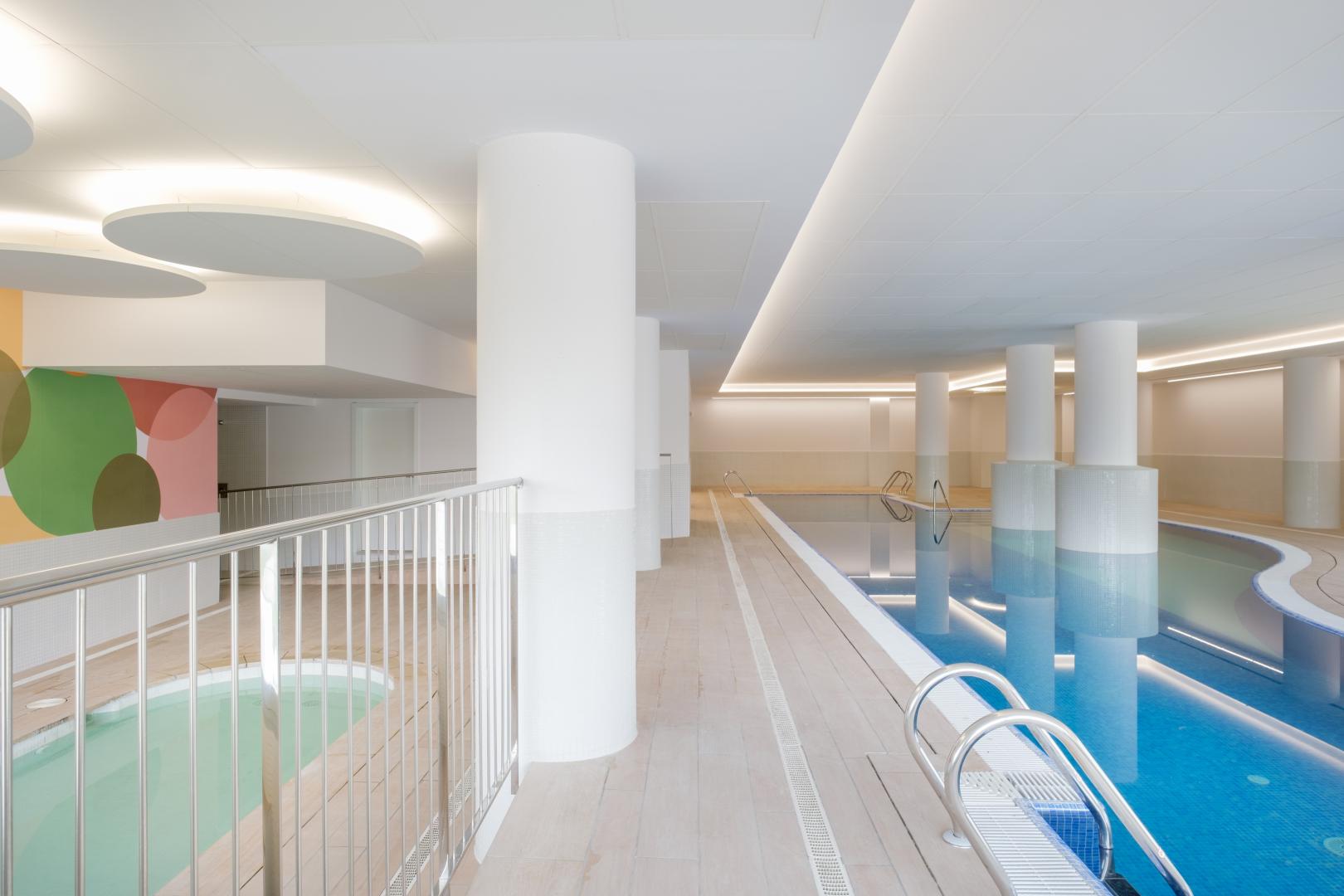 Las zonas comunes, diseñadas para disfrutar todo el año, destacan por su exclusividad, privacidad y confort: gimnasio, gran porche con vistas al río, piscina cubierta acristalada, gastroteca y zona de juegos infantiles.